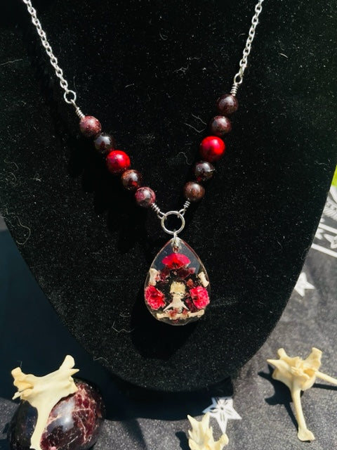 Rodent Spine Bones & Garnet Crystal Necklace