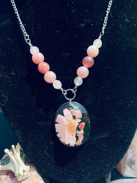 Rodent Spine Bones & Pink Tourmaline Crystals Necklace