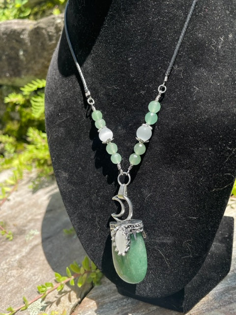 Green Aventurine Round Pendant Necklace (w/ Selenite)