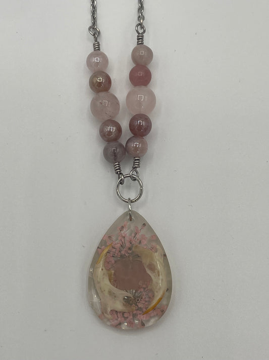Rodent Jaw Bones & Rose Quartz Necklace