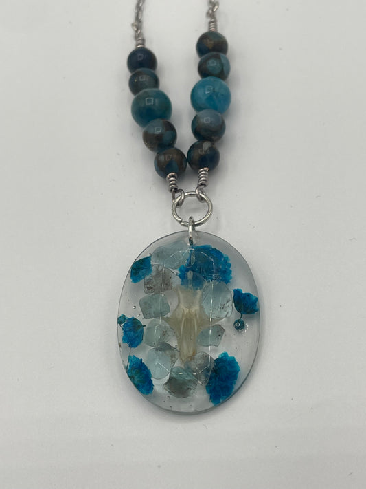Rodent Skull & Blue Apatite Crystal Necklace