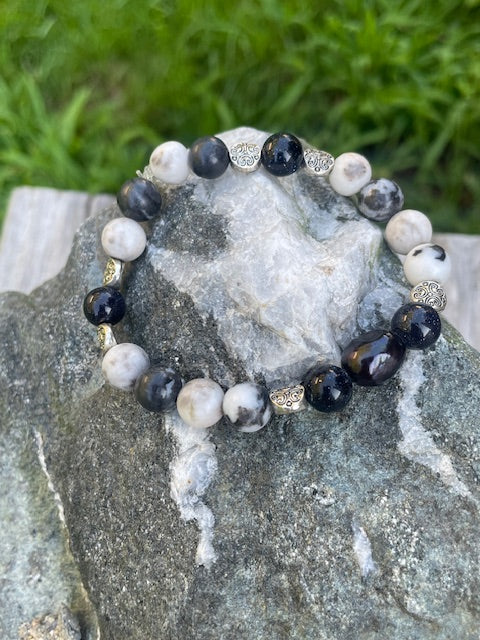 Lapis Lazuli & Blue Goldstone Beaded Bracelet