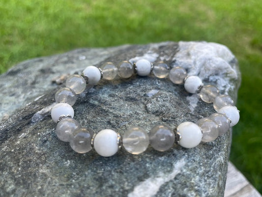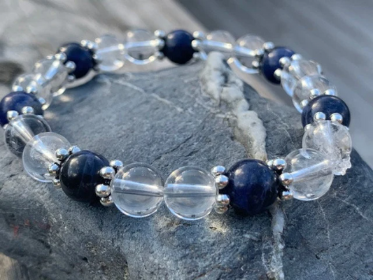 Blue Sodalite & Clear Quartz Beaded Gemstone Bracelet