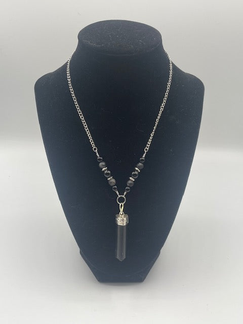 The Black Tourmaline Pendant Necklace features gemstone beads of black tourmaline & zebra jasper, with added silver accent pieces! This necklace is about 17" long, with a silver color chain!